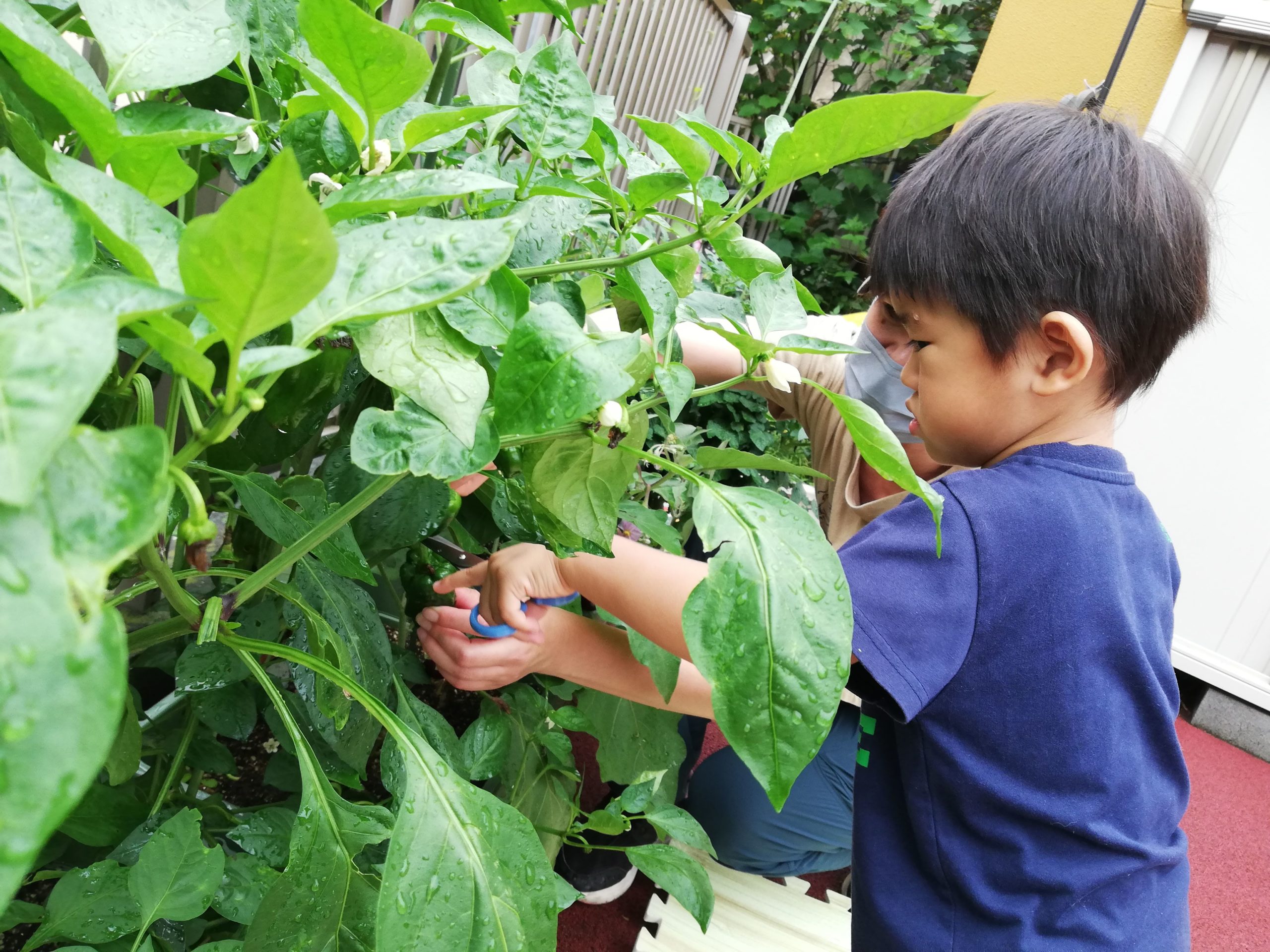 もりた保育室のお庭ではたくさんの野菜や果物を育てています。